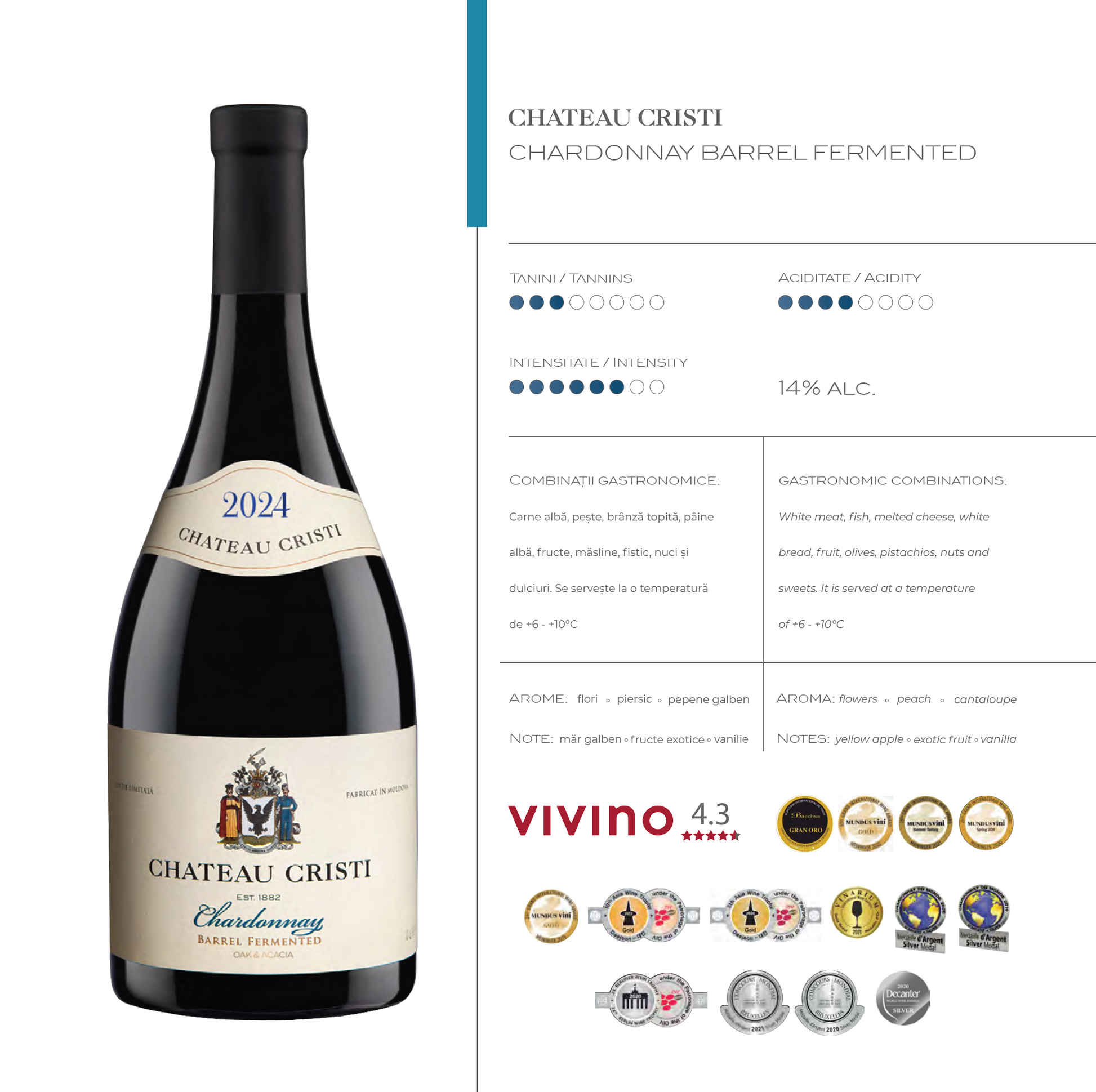 Aceste recunoasteri confirma nivelul premium al selectiei si calitatea constanta a vinurilor Chateau Cristi.